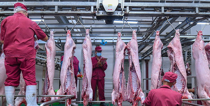 為保證生豬質量,公司堅持從源頭抓起,同國內多家大型牧業(yè)公司、生豬養(yǎng)殖合作社簽訂了長期戰(zhàn)略合作協議,生豬合同化供應率達到80%。